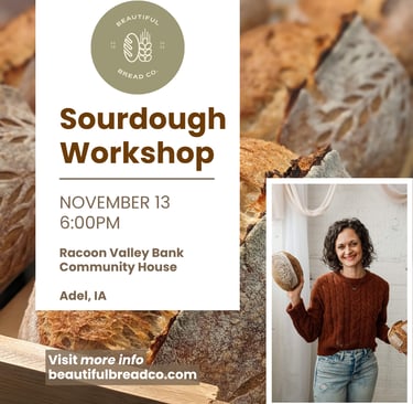 I've had a love for baking from a young age - I credit it to my mom and grandma. I also love creating something special and unique. Those two loves merged in 2020 when I started making sourdough bread. Through lots of learning, experimenting, and a few failures, I fell in love with the process of making sourdough and discovered all the creative possibilities that go along with it! Fast forward to December 2022, and I officially launched Beautiful Bread Co.