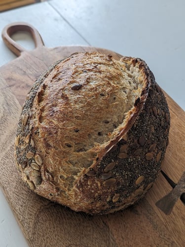 I've had a love for baking from a young age - I credit it to my mom and grandma. I also love creating something special and unique. Those two loves merged in 2020 when I started making sourdough bread. Through lots of learning, experimenting, and a few failures, I fell in love with the process of making sourdough and discovered all the creative possibilities that go along with it! Fast forward to December 2022, and I officially launched Beautiful Bread Co.